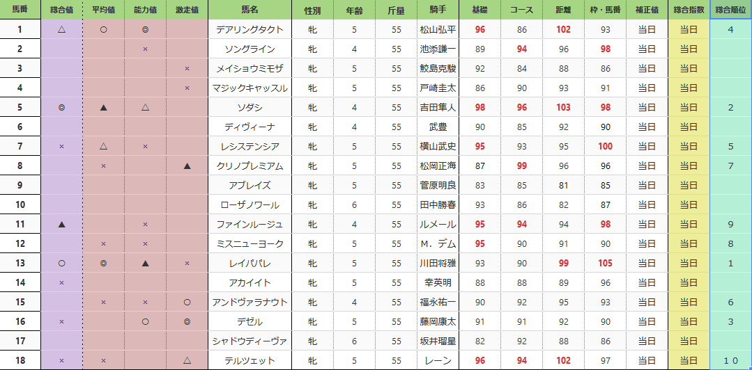 ヴィクトリアマイル (GI) (前々日総合指数表)