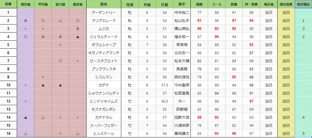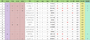 小倉記念(GIII) 総合指数表(前々日)