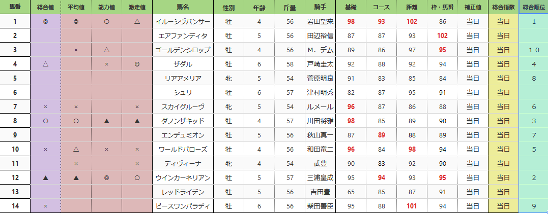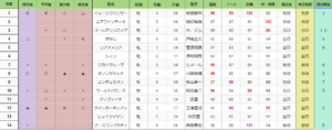 瞬発力の差が出そうで、上がり馬、指数が高い馬はは警戒した方がよさそう。