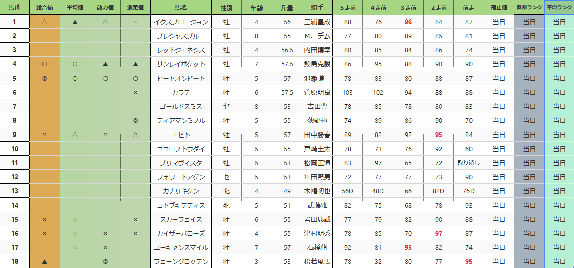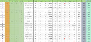 新潟記念 基礎指数表 (前々日)