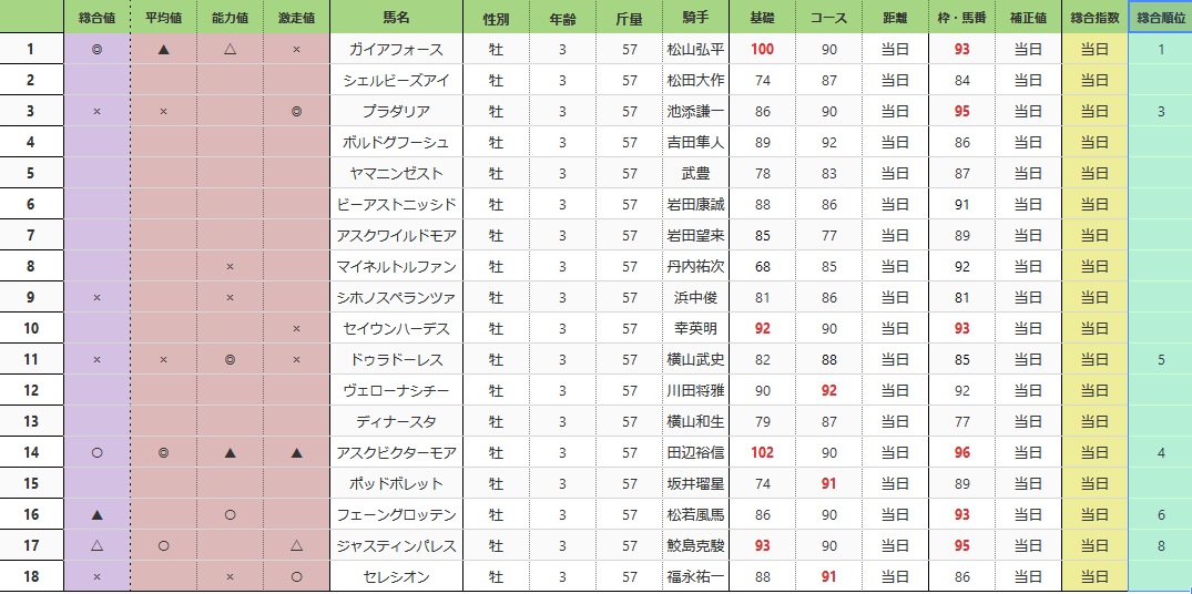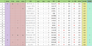菊花賞 総合指数表(前々日)