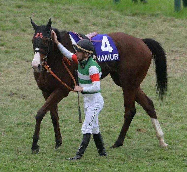 レース後もジョッキーの騎乗服に泥が付着が見られました。