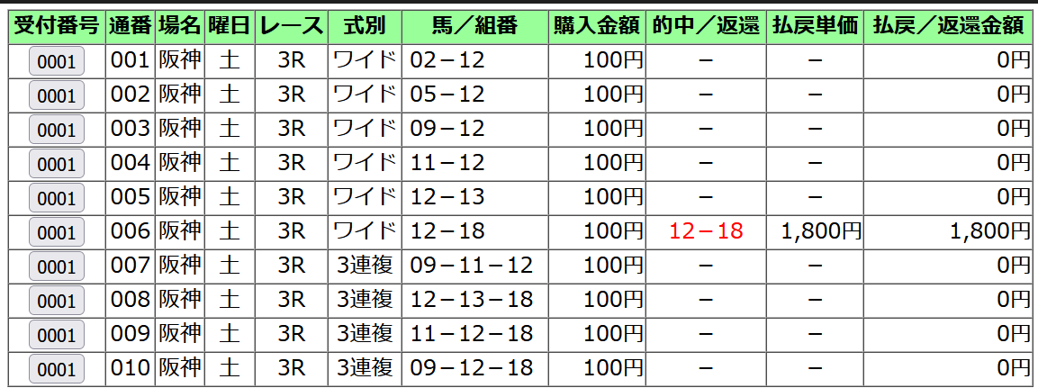 三連複 3260円的中! (18点)