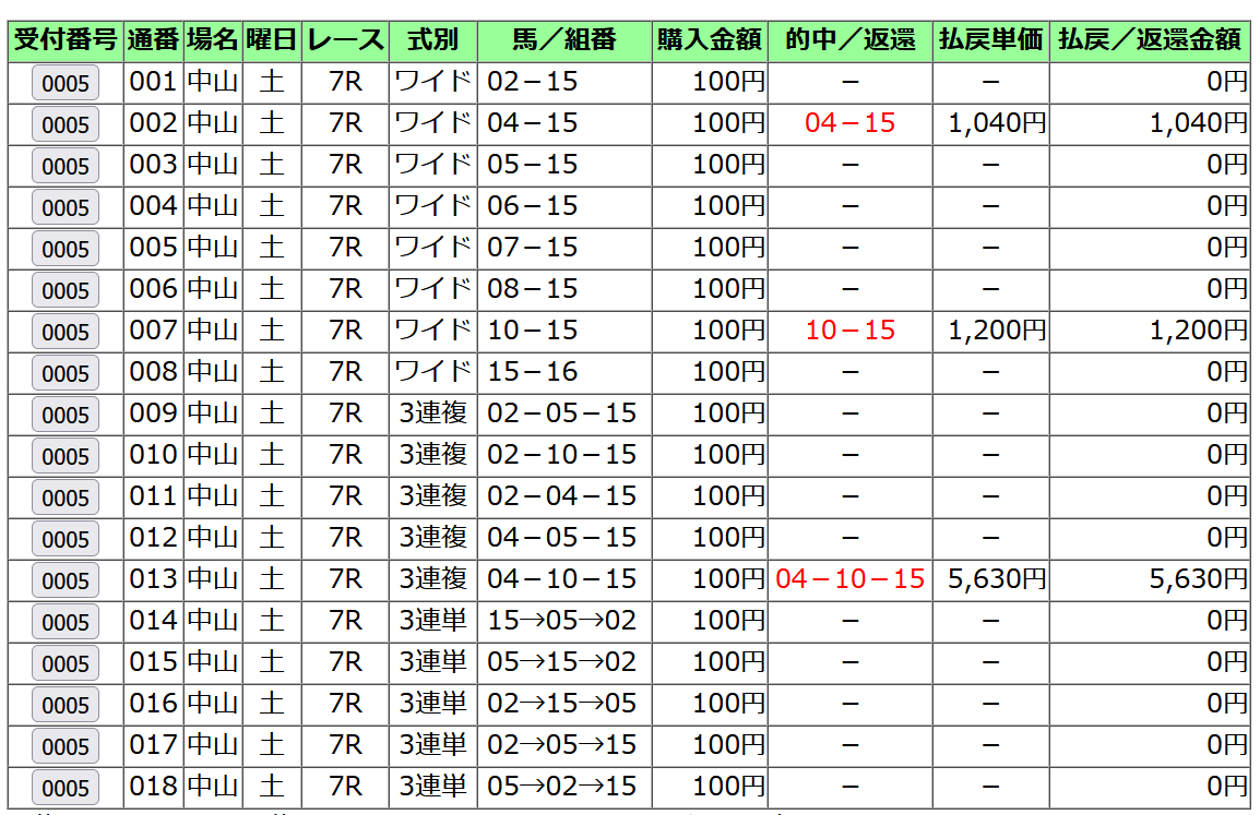 三連複 7710円的中! (15点)