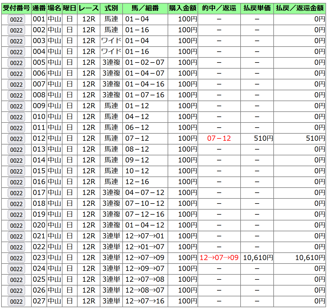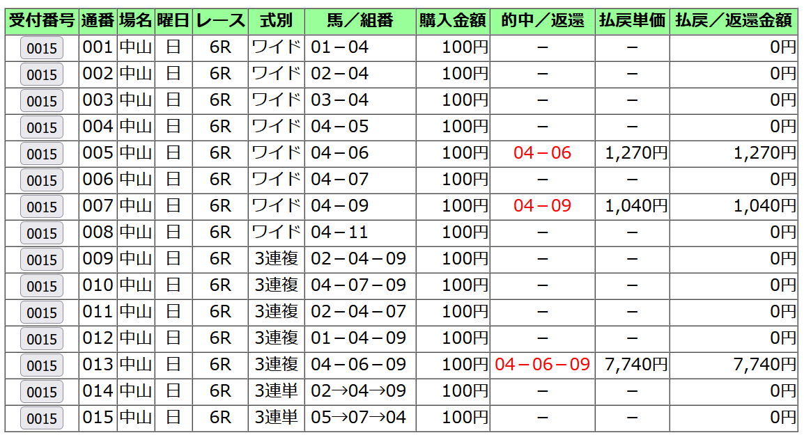 三連複 22720円的中! (15点)