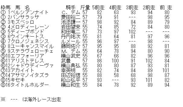 コチラの予想は、前日での指数、データベース(予想スタイル参照)を使用しており、
