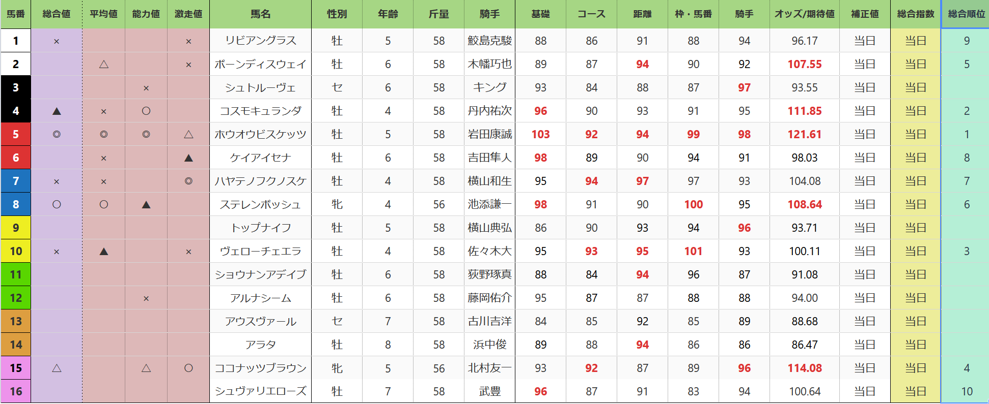 今回は大外だが、テンは確実なので粘りこみとスタミナ勝負に持ち込めば。