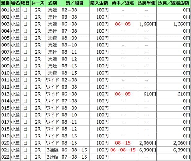 馬→馬連 軸→相手馬番