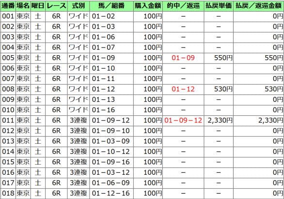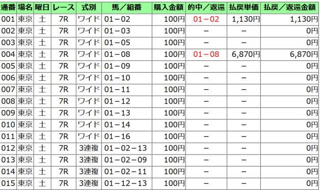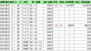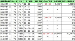 買い目は、馬連、ワイドは軸→流し。